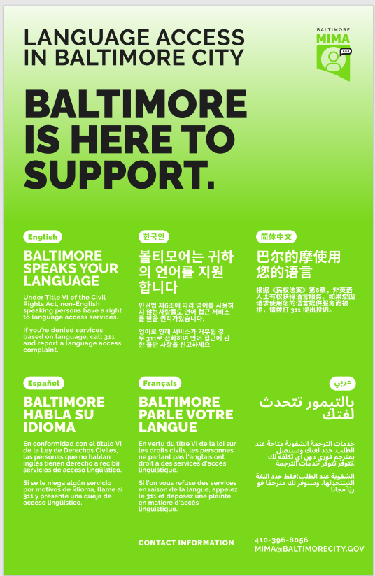 BALT311, in partnership with MIMA, is committed to helping our diverse communities connect with essential city services. Together, we strive to ensure all residents—regardless of language or background—can access the resources they need. Call center agents are available 7 days a week, from 6 AM to 1...Read more